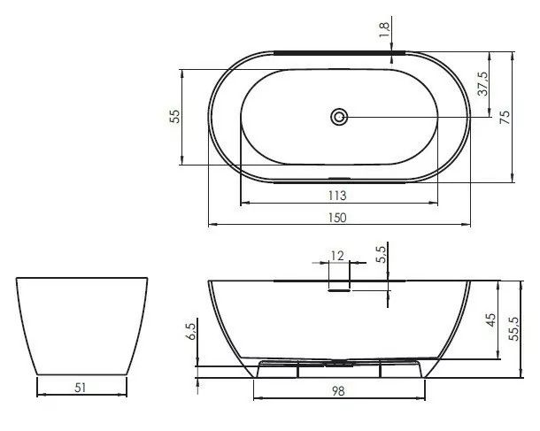 Ванна из искусственного камня Riho Bilbao 150x75 B119001105