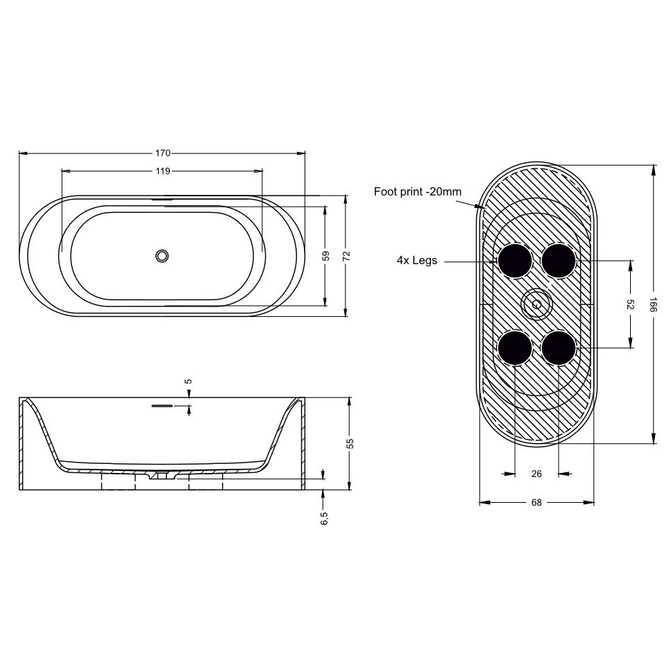Ванна из искусственного камня Riho Oval 160x70 B130001105