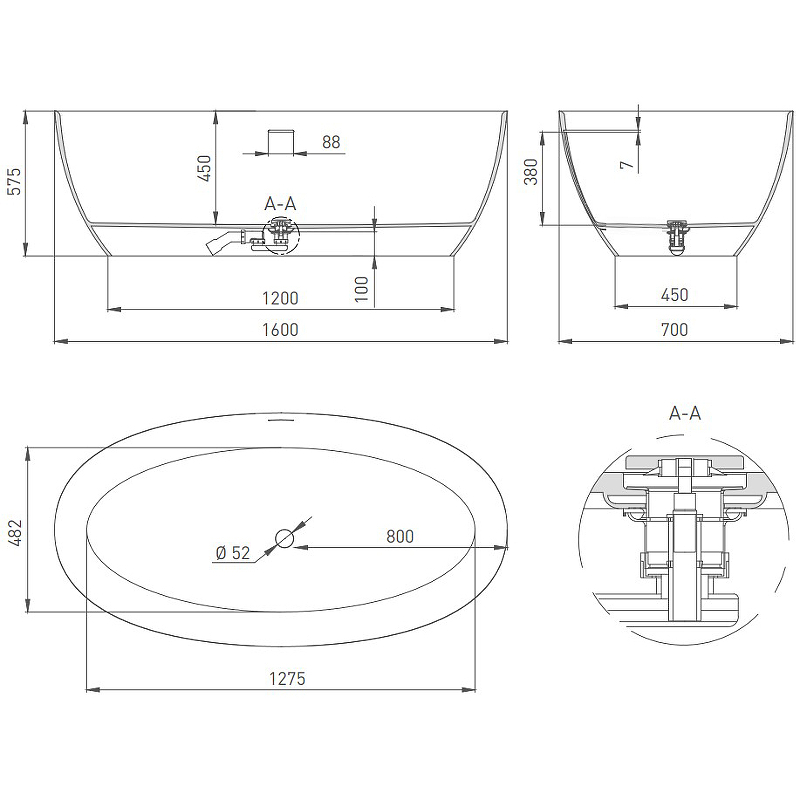 Комплект поставки: ванна, интегрированный слив-перелив, сифон, донный клапан.