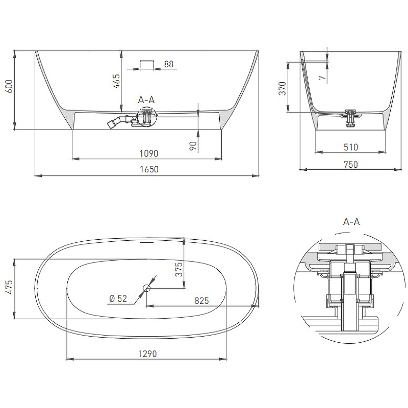 Комплект поставки: ванна, интегрированный слив-перелив, сифон, донный клапан.