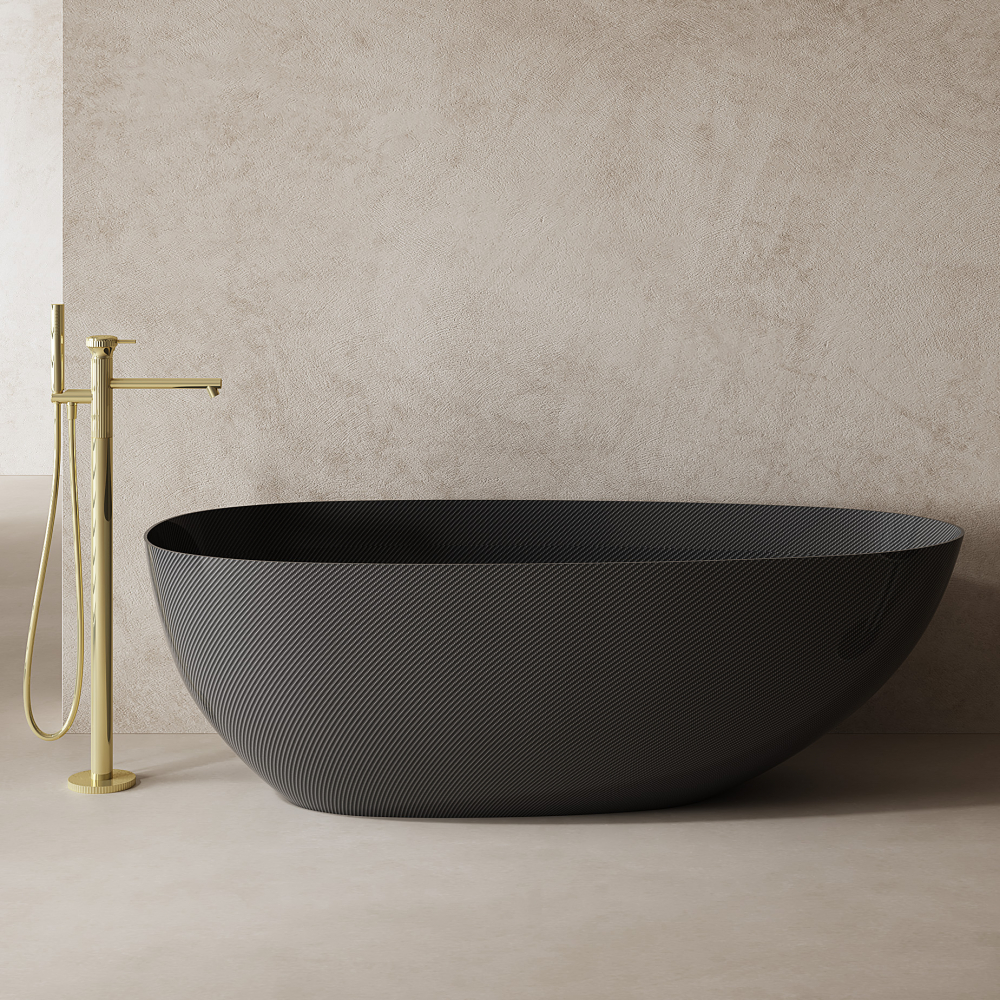 Abber Karbon. Прочность, невесомость и эстетика. Карбоновые ванны Abber — это передовая технология, объединившая легкость композитных материалов с исключительной прочностью. Ультратонкие стенки сохраняют тепло в 2 раза дольше традиционного акрила, а матовое черное покрытие выглядит безупречно и не требует сложного ухода. Идеальный выбор для интерьеров, где ценят инженерное совершенство и смелый дизайн.