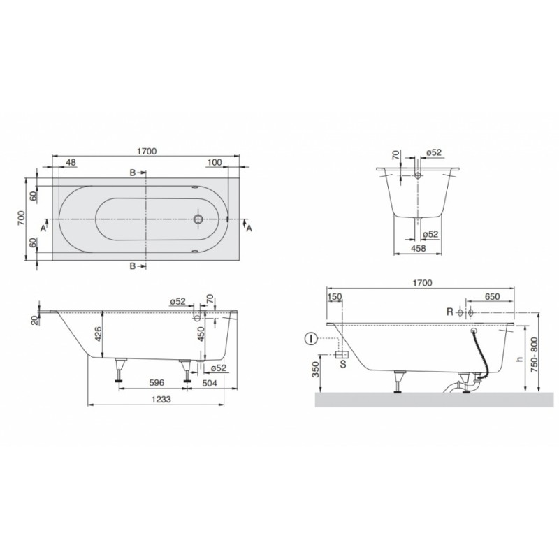 Комплект поставки: ванна, ножки.