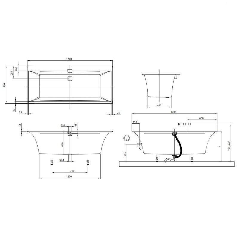 Комплект поставки: ванна, слив-перелив, ножки.
