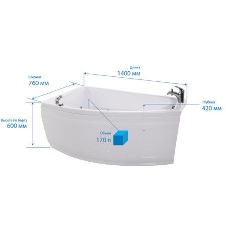 Ванна акриловая Тритон Бэлла 140х75-правая