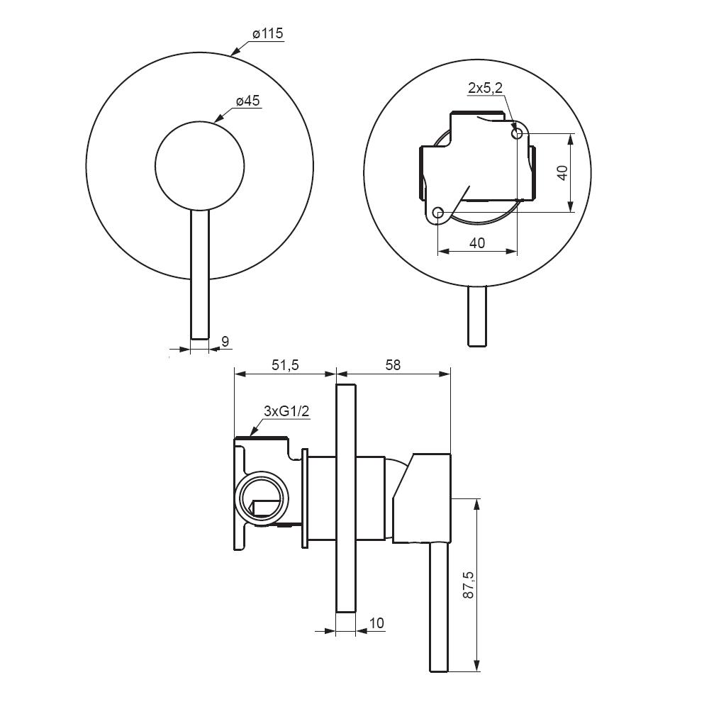 Встраиваемый смеситель Damixa Scandinavian Pure 367500300 черный матовый