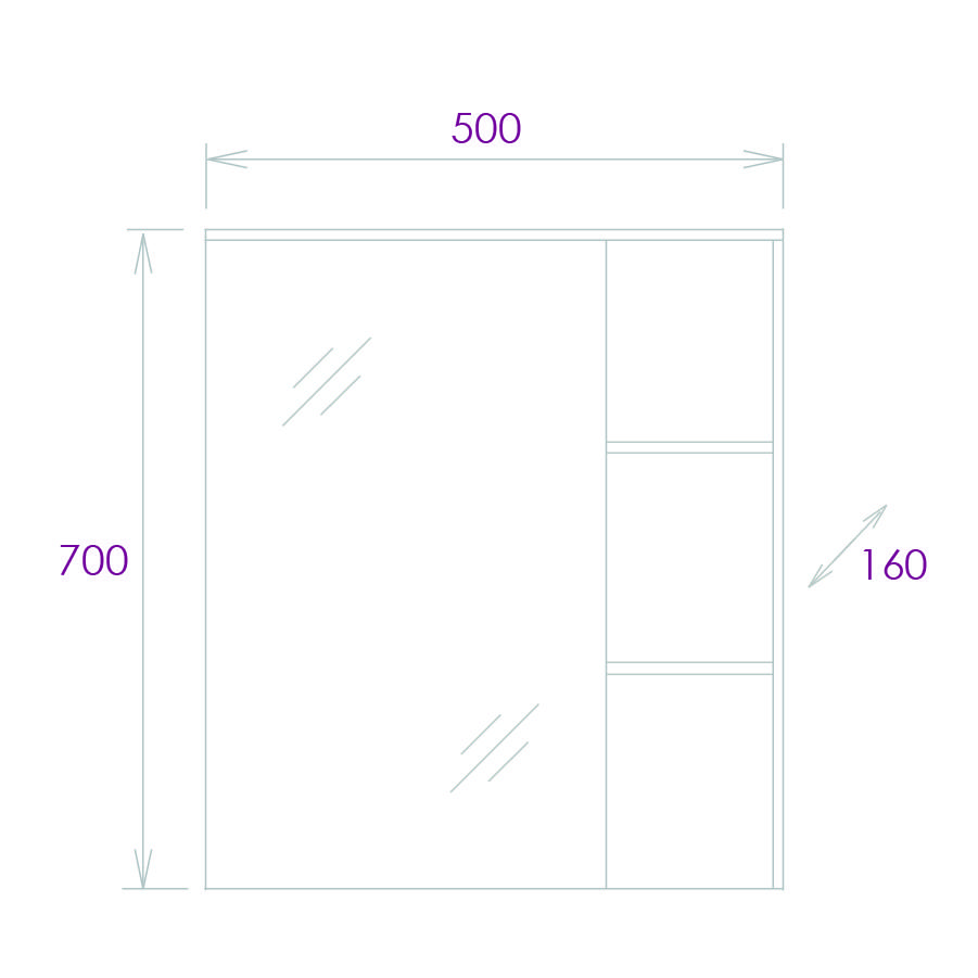 | Оснащение | шкаф / зеркальное полотно / полки / дверки / доводчик |