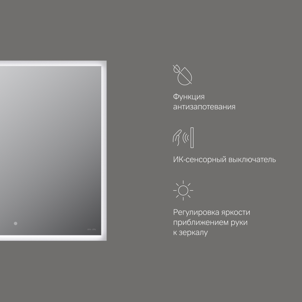 Инфракрасный сенсорный выключатель позволяет регулировать яркость жестом руки без прикосновения к самой поверхности зеркала.