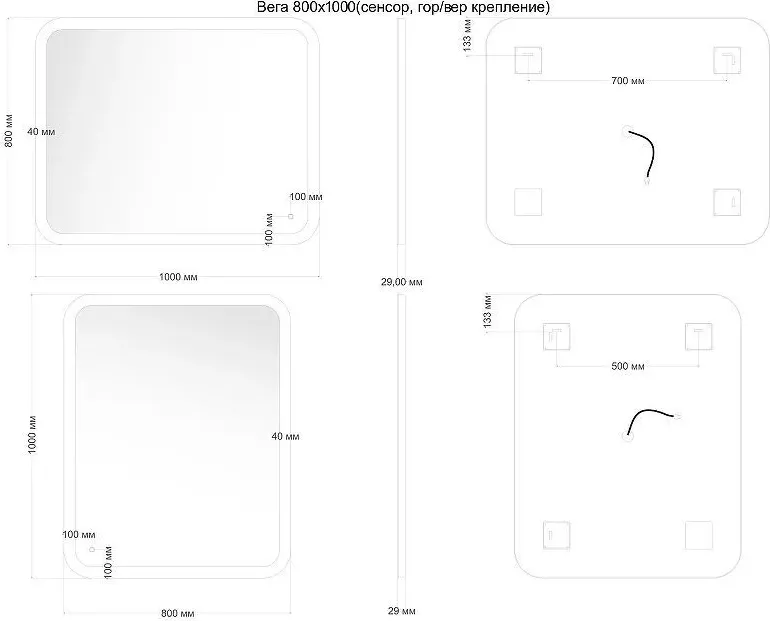 Комплект поставки: зеркало, подсветка.
