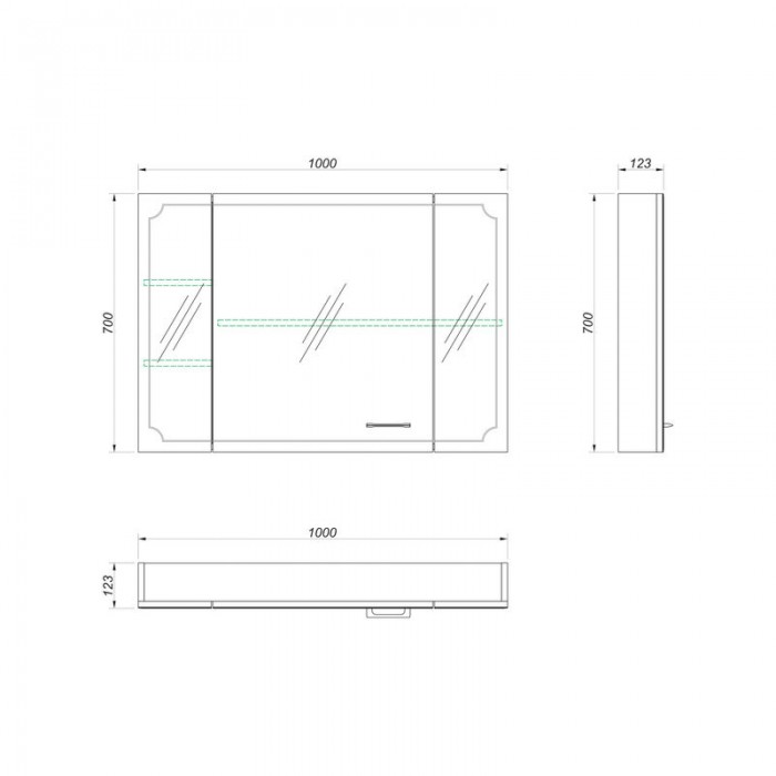 | Оснащение | шкаф / зеркальное полотно / крепления |
