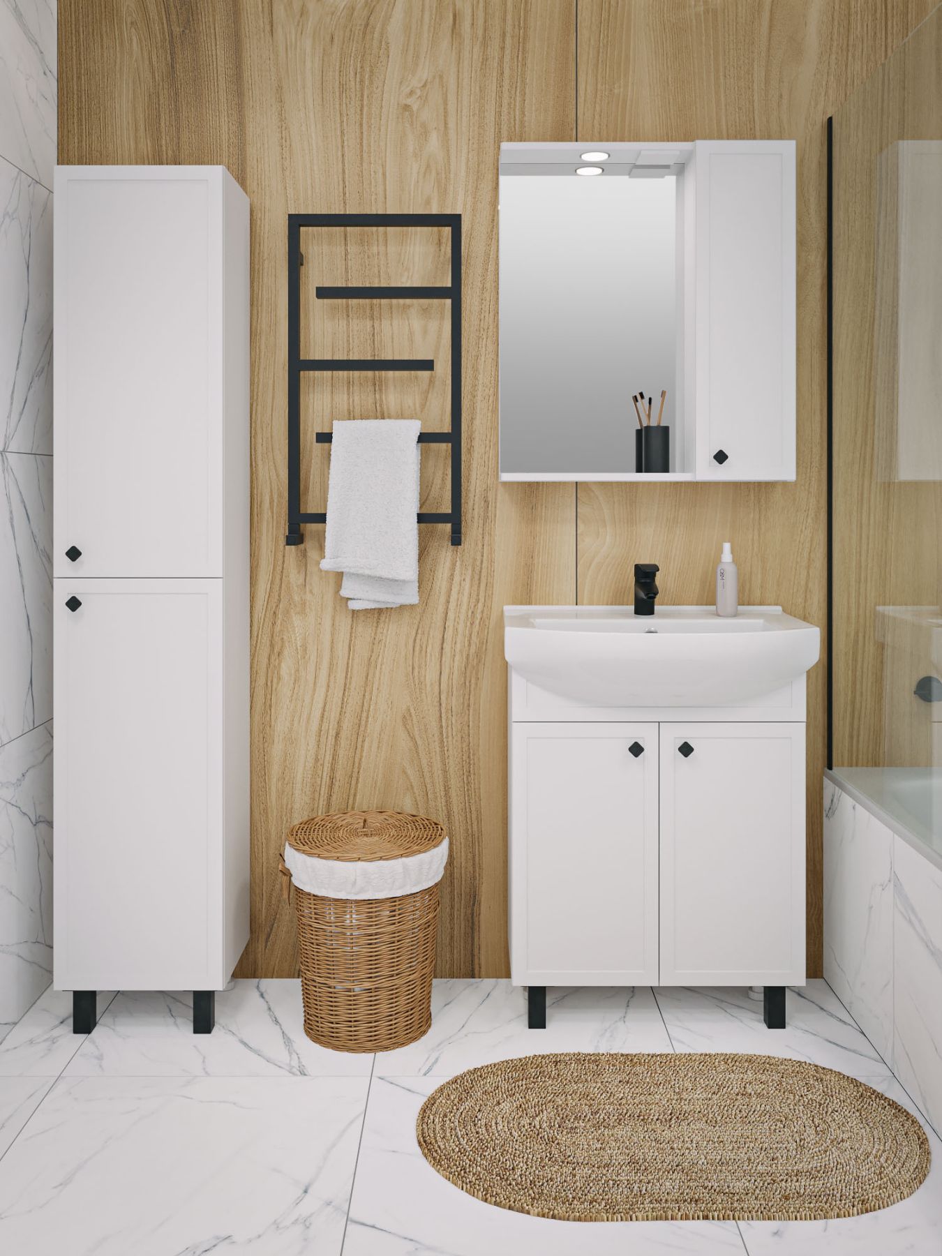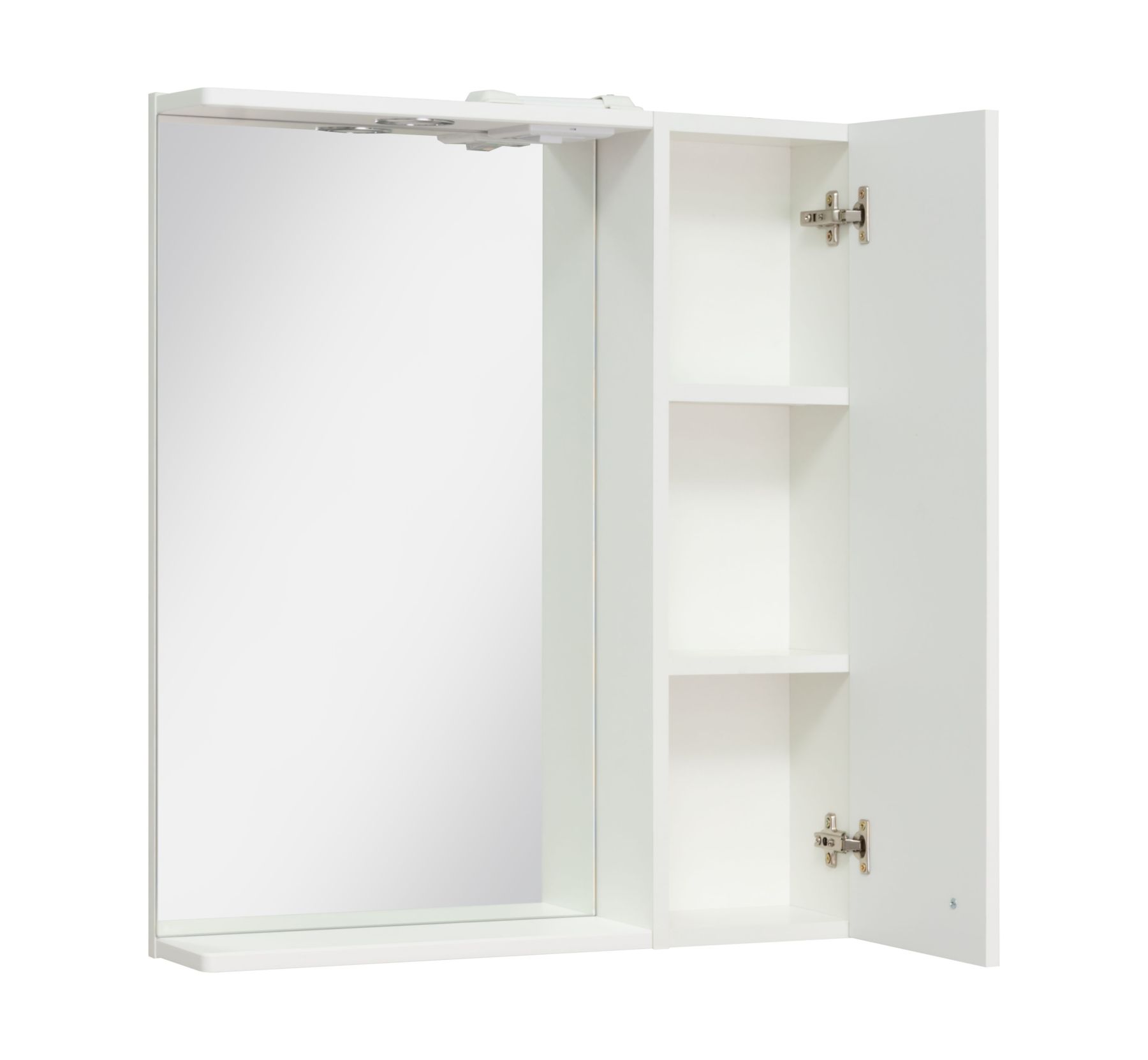 | Оснащение | зеркало-шкаф / петли с доводчиком / ручка / светильник / розетка с выключателем |